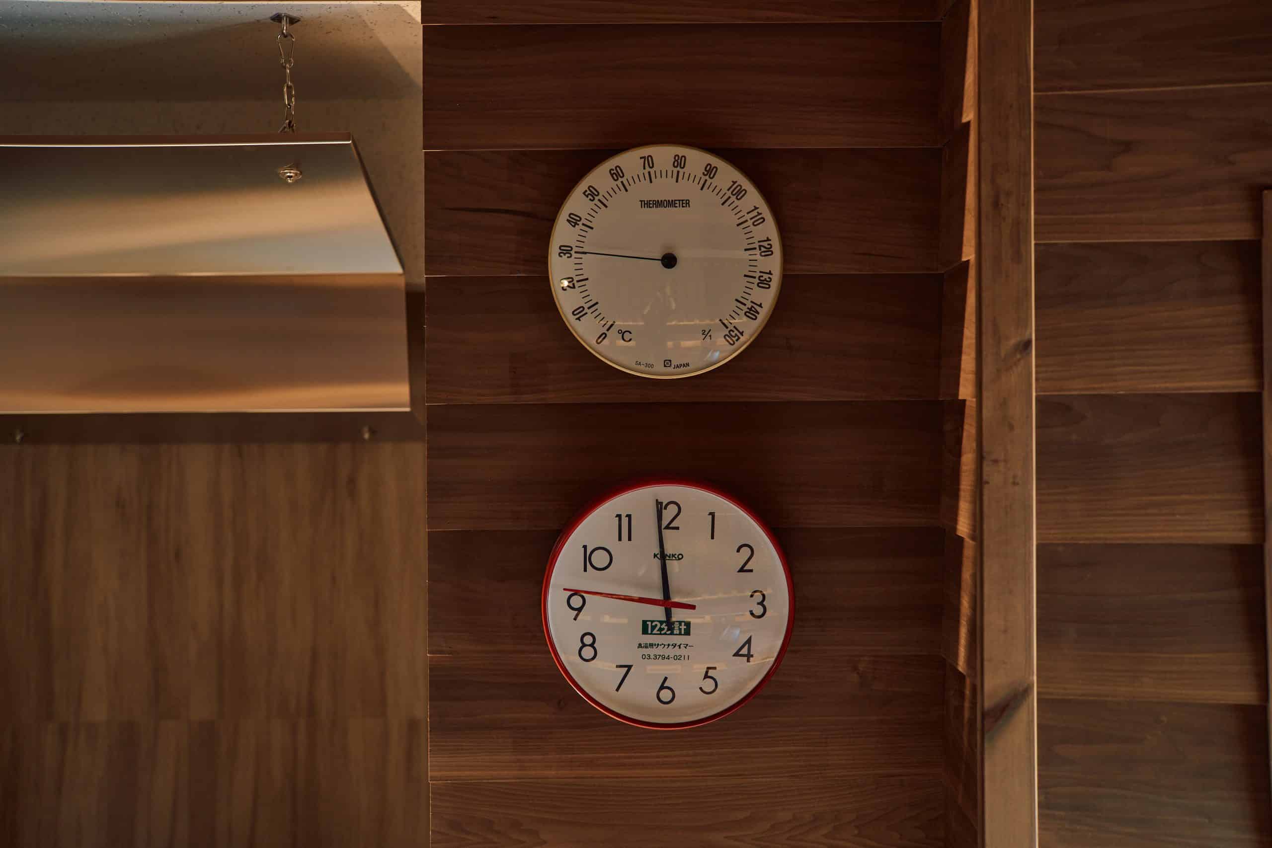 商業サウナ施設の工事経験で得た壁面構造により、サウナ体積は40m3でもヒーター公称出力13.8kwのハルビア レジェンド15 1台で余裕の100°超え。
